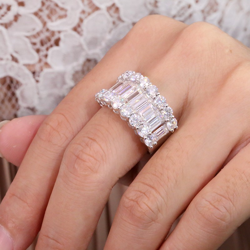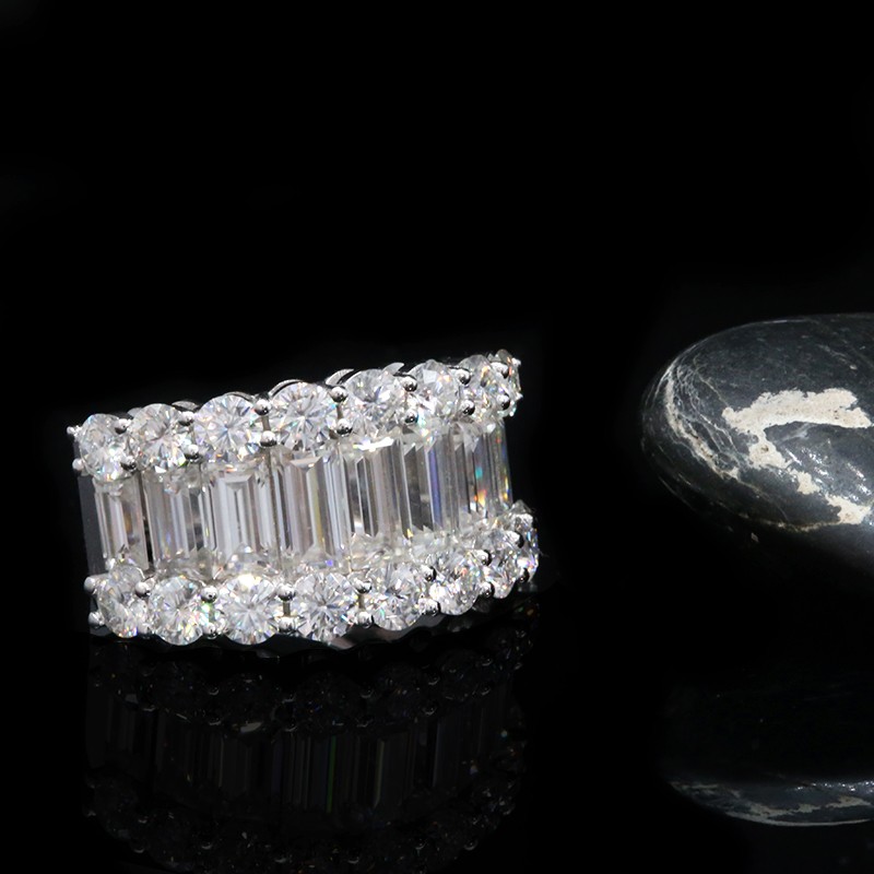 Luxury Solid 18K Gold Moissanite Diamond Wedding Band Round Cut Baguette Cut Diamonds Half Eternity Anniversary Ring
