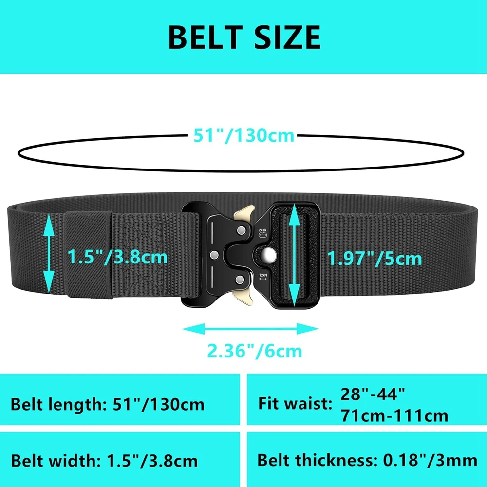 Tactical Belt Size: Length: 51"/130cm, fits waist: 28"~ 44". width:1.5"/3.8cm. F