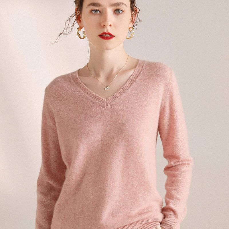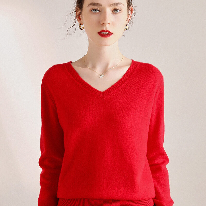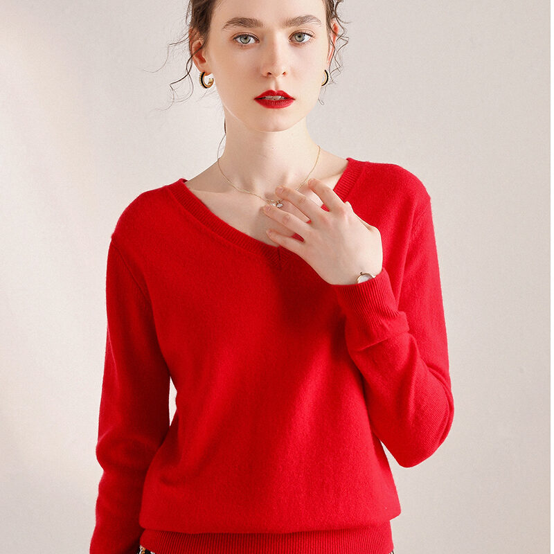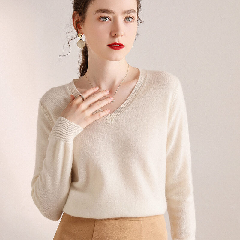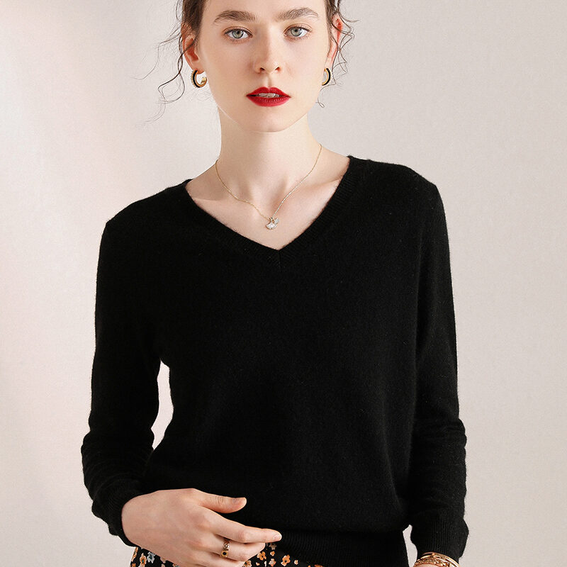 100% Cashmere Sweater Women's Classic Simple V-neck Pullover Knitted Sweater Pure Cashmere Slim Fit All-Match Bottoming Shirt