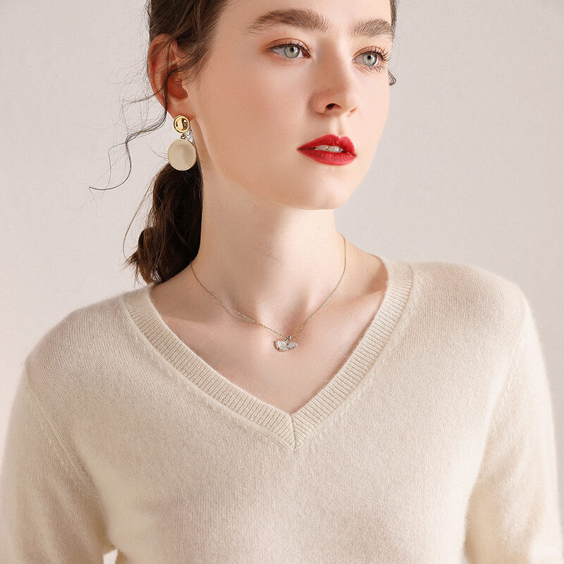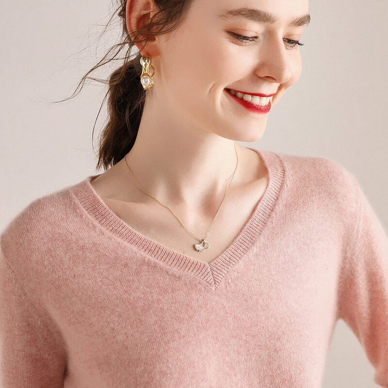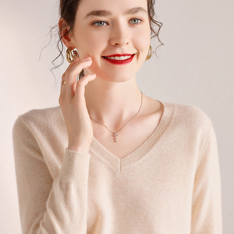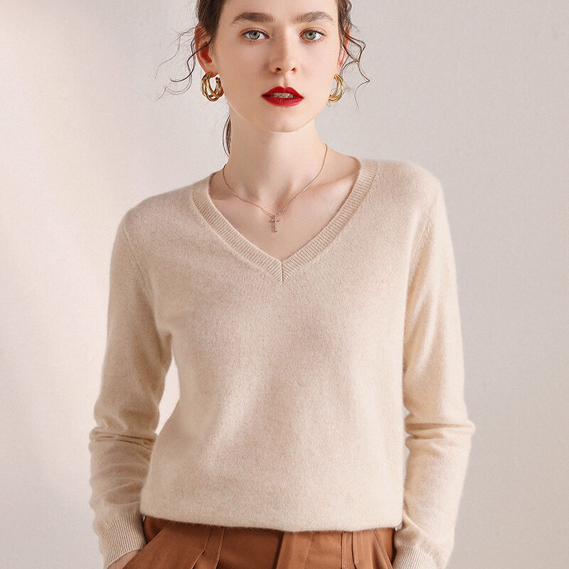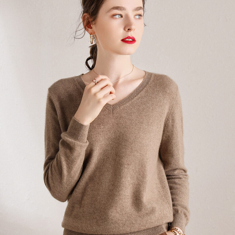 100% Cashmere Sweater Women's Classic Simple V-neck Pullover Knitted Sweater Pure Cashmere Slim Fit All-Match Bottoming Shirt