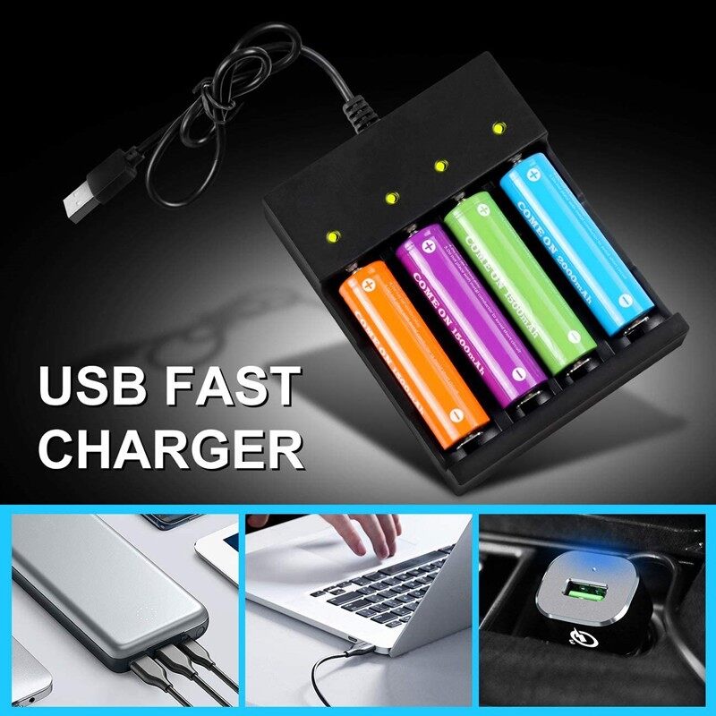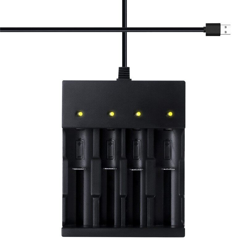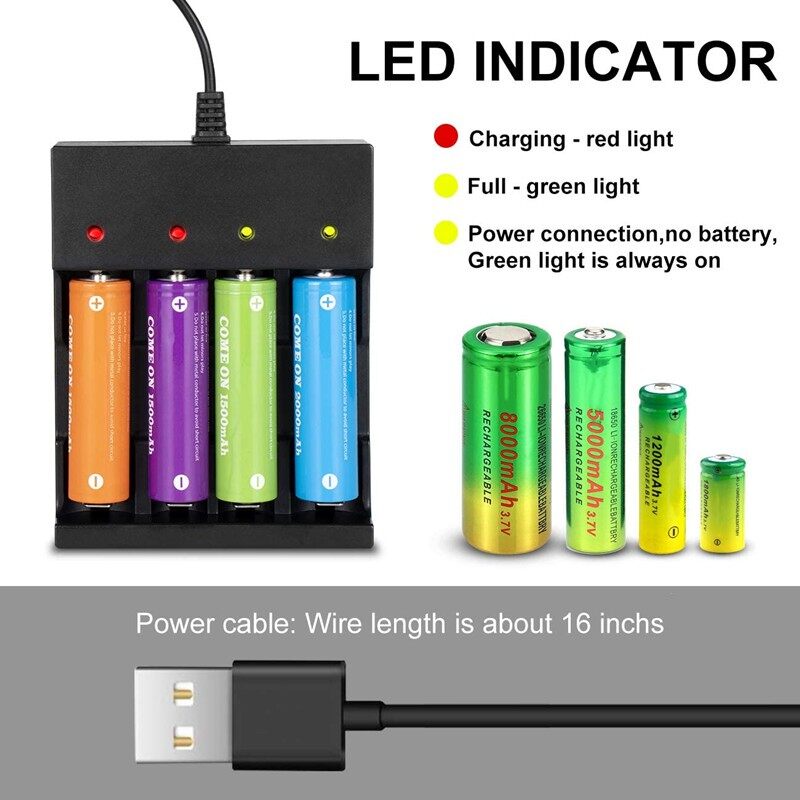 1.Intelligent Charger: USB Smart Battery Charger 4-Bay Has four independent charging channels, it can charge four lithium batteries at the same time. The charging indicator allows you to clearly understand the charging status of the battery. Red light when charging, green light when fully charged.