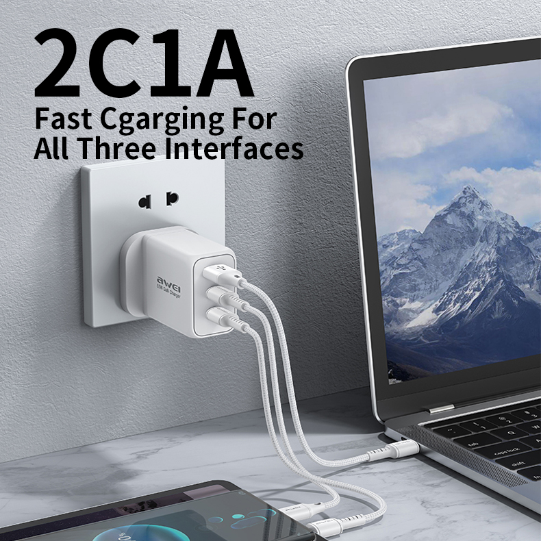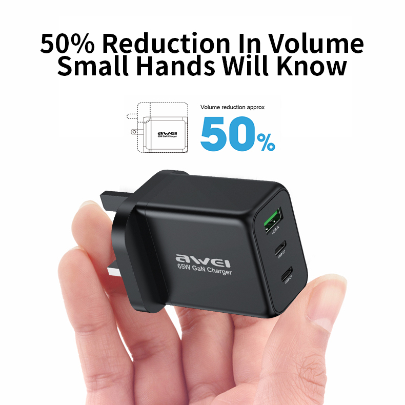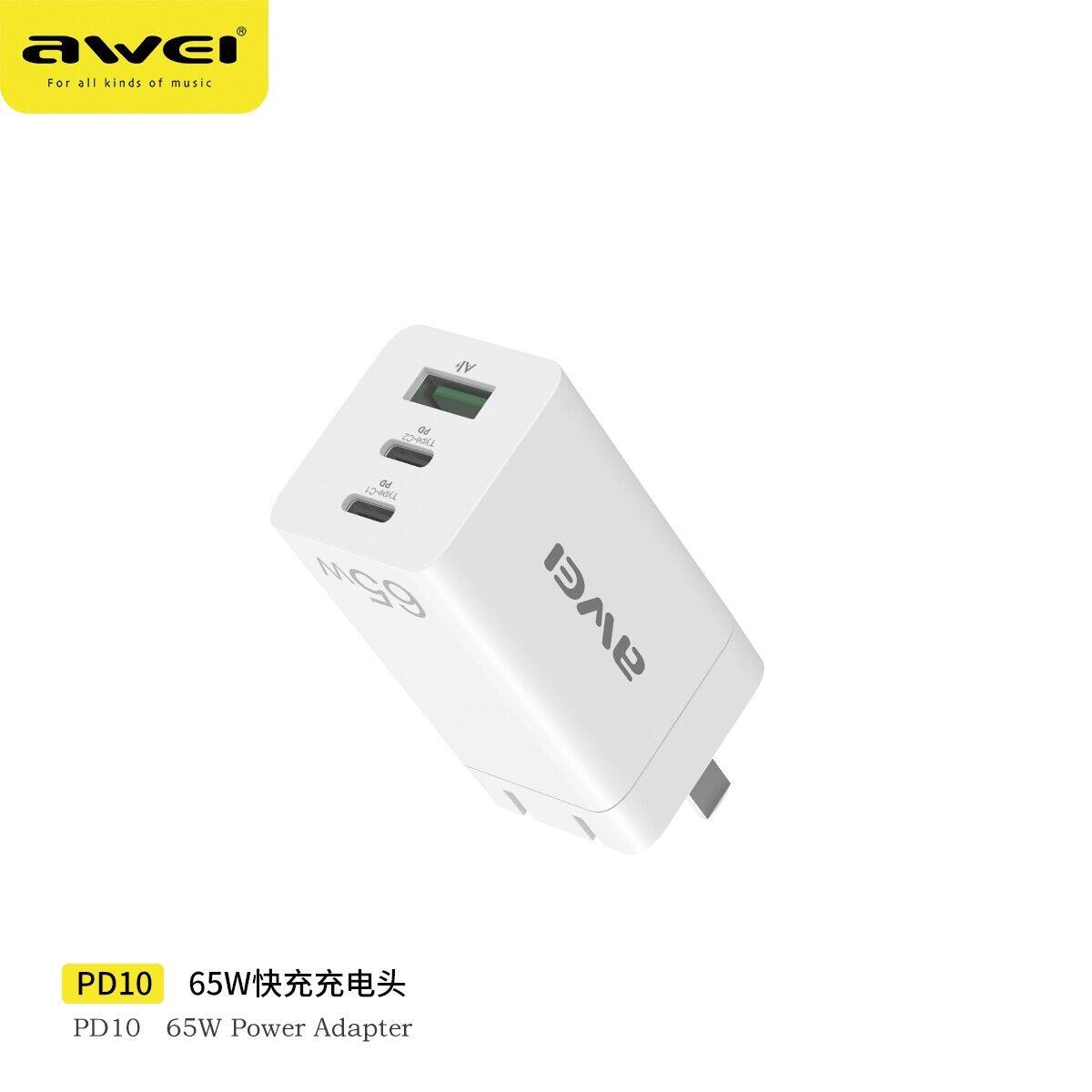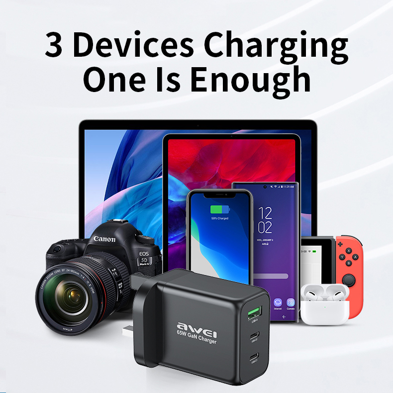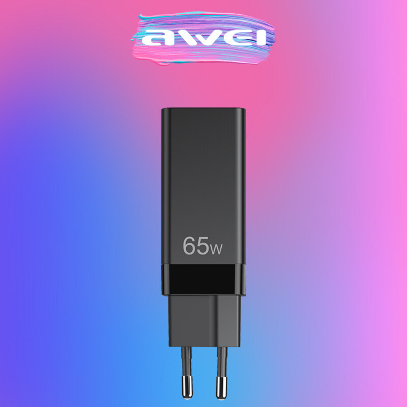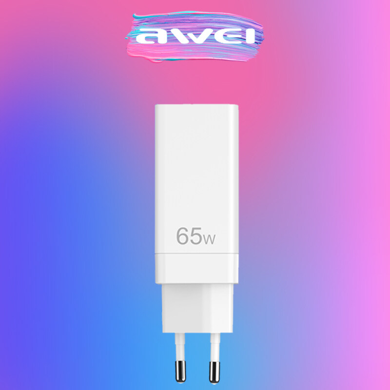 Awei PD18 PD 65W GaN Fast Charger Quick Charge 2 Type C 65W 1 USB A 30W with QC 4.0 3.0 Portable UK Plug for airpods pro iPhone 13 12 XR Xiaomi Macbook M1 pro Laptop iPad Pro Huawei P20 P30 P40 sony w