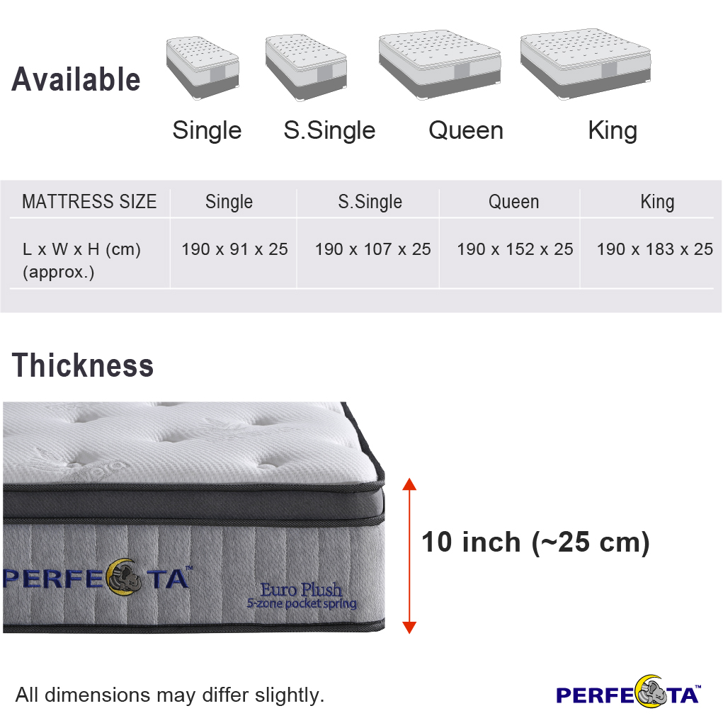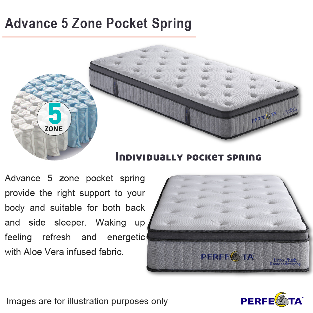 [Bulky] Euro Plush Mattress | Euro Top Design | 5 Zone Pocketed Spring | Aloe Vera infused fabric