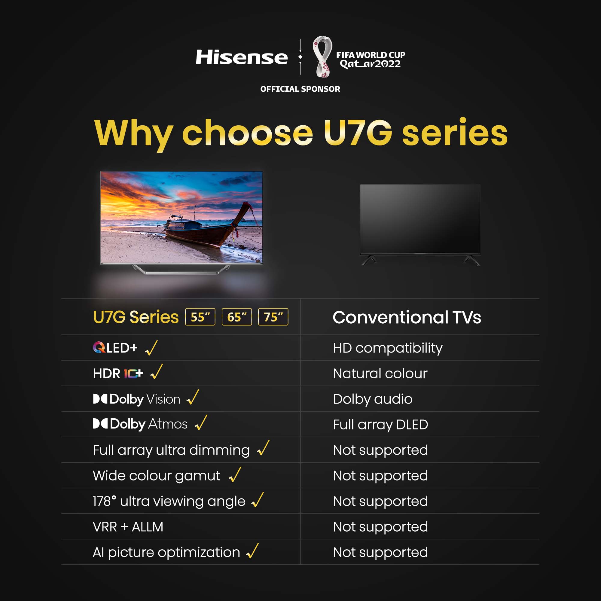 About #Hisense ? TOP-Ranked Global TV Brand ? ᴏғғɪᴄɪᴀʟ sᴘᴏɴsᴏʀ ᴏғ ғɪғᴀ ᴡᴏʀʟᴅ ᴄᴜᴘ ᴏ̨ᴀᴛᴀʀ 2022™ ⚽ With over 30 million satisfied customers, you can trust that you’re getting a quality product.