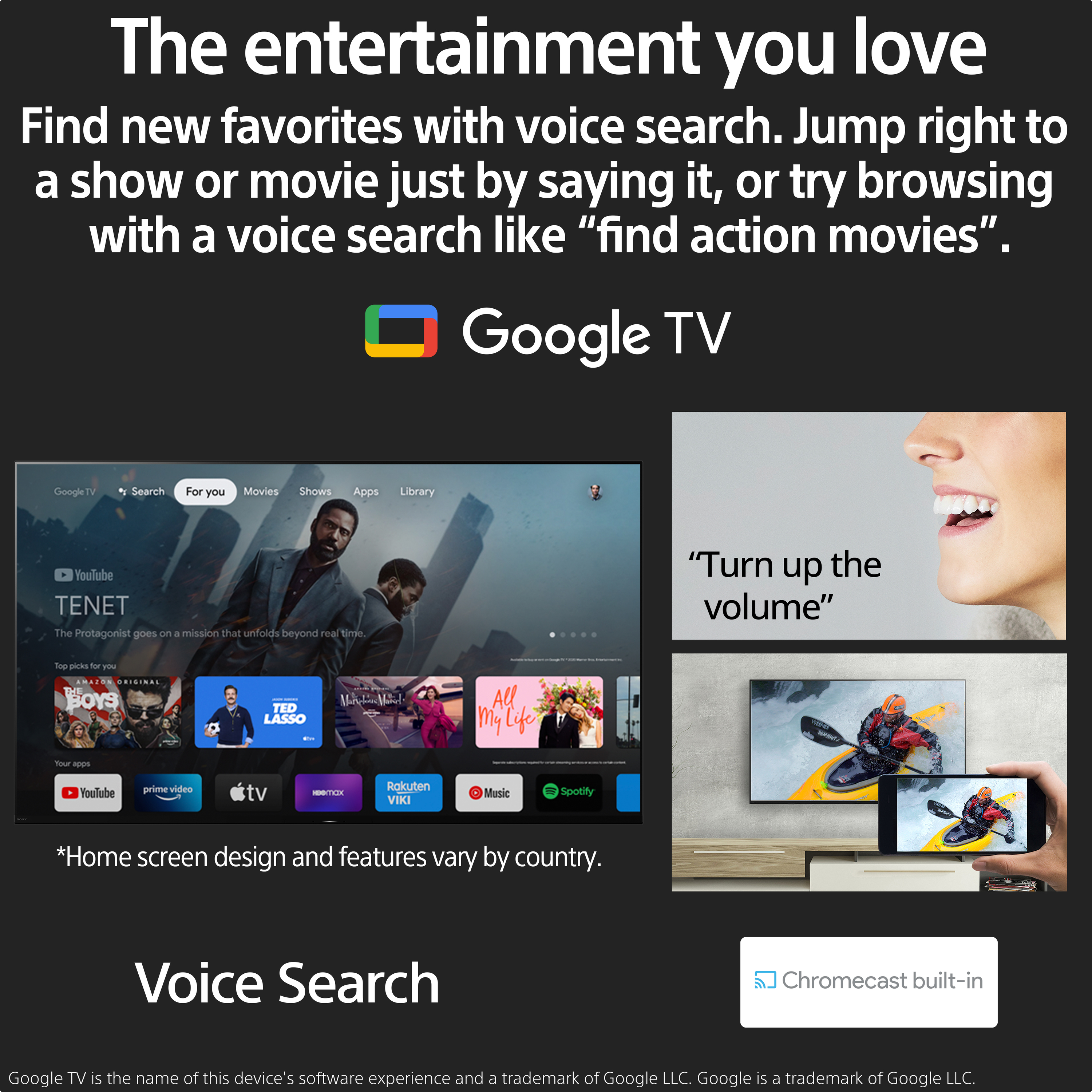Go from your phone, tablet, or laptop to your TV in an instant. With Chromecast built-in, you can cast all your favourite movies, shows, apps, games, and more directly to your TV.