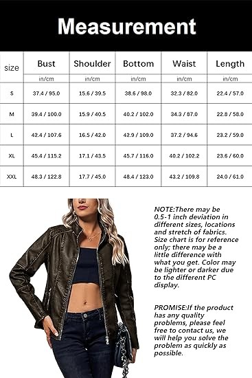 Clothing Matching: Leather jackets are suitable for all sorts of occasions. It’s such a versatile piece of outerwear, a cropped style like this one is perfect for layering with dresses, pick one size up, and will be perfect for layering with chunky knitwear and hoodies