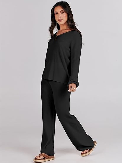 【Versatile】Pajama sets can be dressed up with booties, or down with sneakers and can be worn as a sweater set, or as separates, the top is our classic oversized ribbed knit sweater, and the pants are a soft loungewear pajamas pants, throw-on-and-go approach to dressing