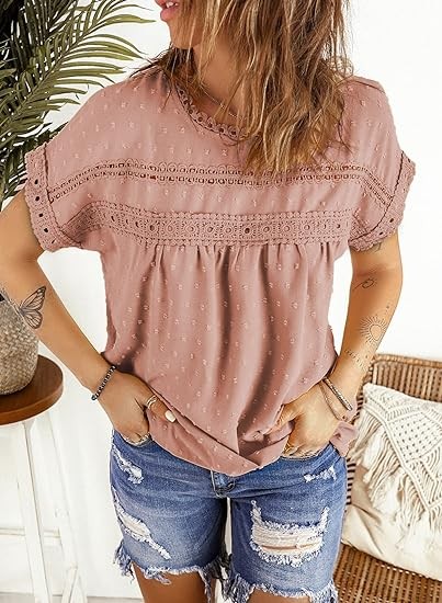 Dokotoo womens crew neck crochet lace shirts is made with high-quality fabric. Soft, lightweight and comfortable to wear