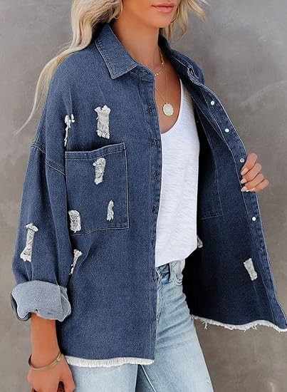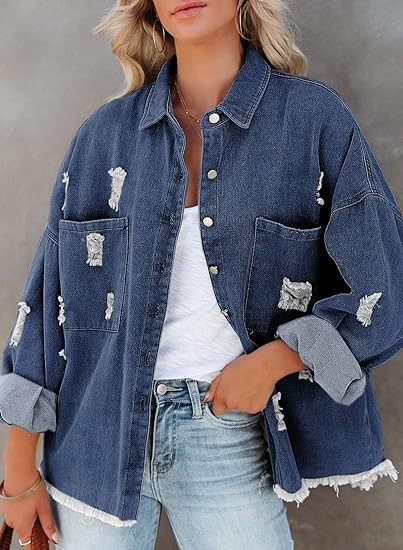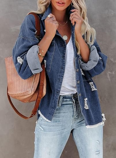 COMFORTABLE FABRICS:This womens distressed fasion outwear is made of 100%cotton. The women basic jean jacket is stretch denim fabric wear more comfort.