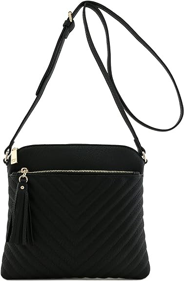 FashionPuzzle Chevron Quilted Medium Crossbody Bag with Tassel Accent