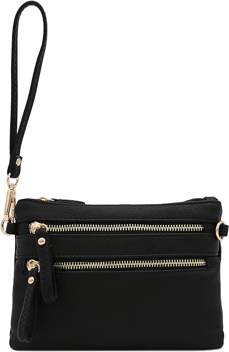 FashionPuzzle Multi Zipper Pocket Small Wristlet Crossbody Bag
