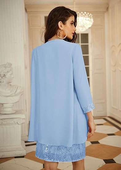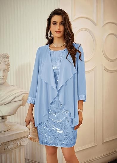 FEATURES:Mother of the bride dresses with jacket,wedding guest dresses for women,tea length chiffon evening dress,evening party dresses for moms,women's formal sequin dresses,dresses ,sleeveless crew neck sequined bodycon dress with hidden zip at back,sequin slim skirt + outerwear of the same series.jacket dress,three quarter length cover-up with sequined cuffs.
