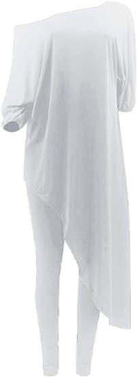 【Features】The Plus Size 2-piece outfit set: one-shoulder 3/4 puff sleeves irregular hem top and bodycon high-waist elastic pants.Designed with solid colors and basic look, never out of date.