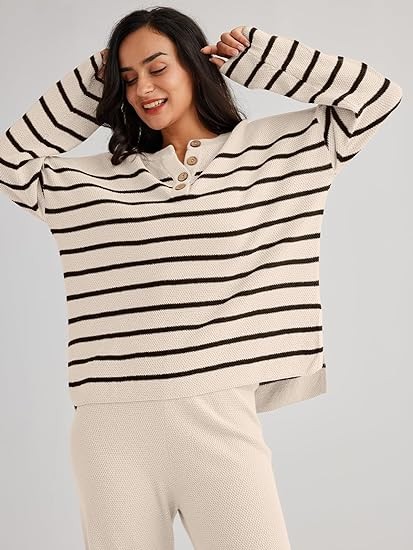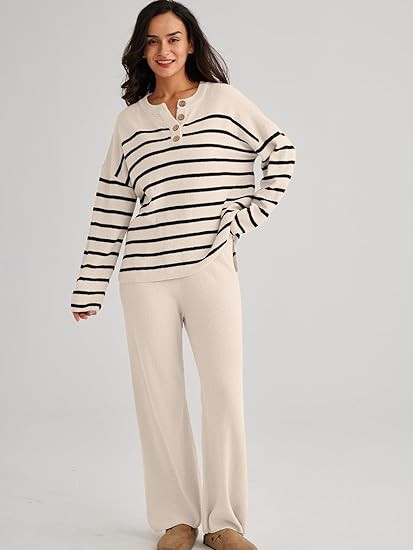 Design: Top: crew neck, button design, long sleeve, oversized loose, side slit, dropped raglan sleeves; Pants: Elastic waistband, high-rise design, pull-on style. Worn as a set or separately to run errands or wear boots and wear it to dinner, it is so versatile you can wear it anyway you want.
