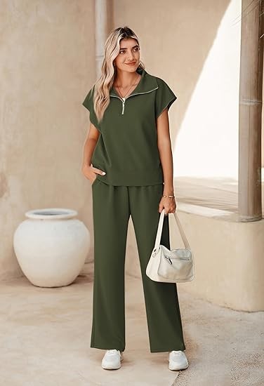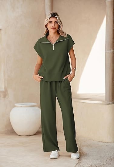 • Design: This 2 piece outfits featured 1/4 Zipper sleeveless pullover tops and wide leg pants