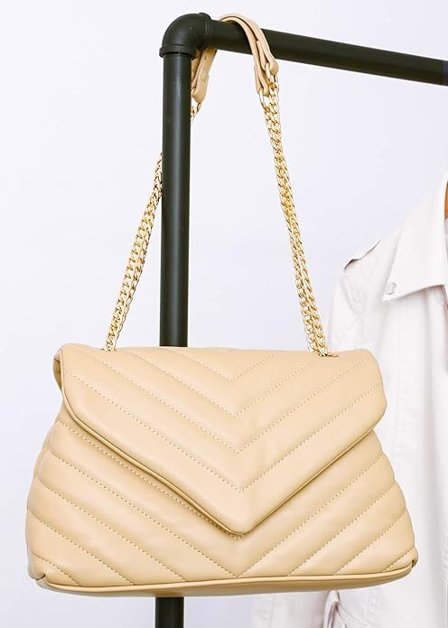 Chain:The crossbody bag uses gold color chain with dul plated.