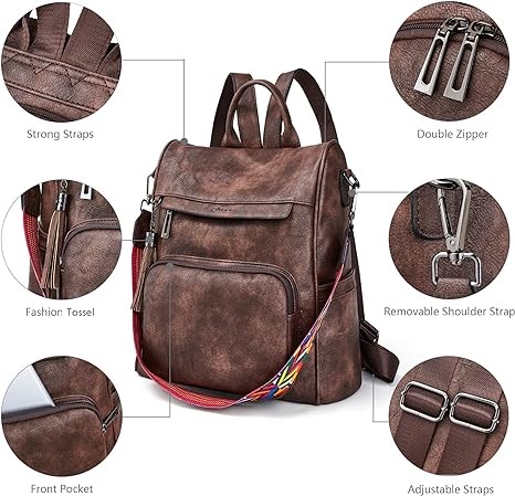 [Backpack Purse For Women] Leather backpack purse for women to carry. Shopping, travel, dating, hiking, amusement parks, etc. Also, this anti-theft backpack can be used as a gift for mum, lover, friend, daughter, and yourself