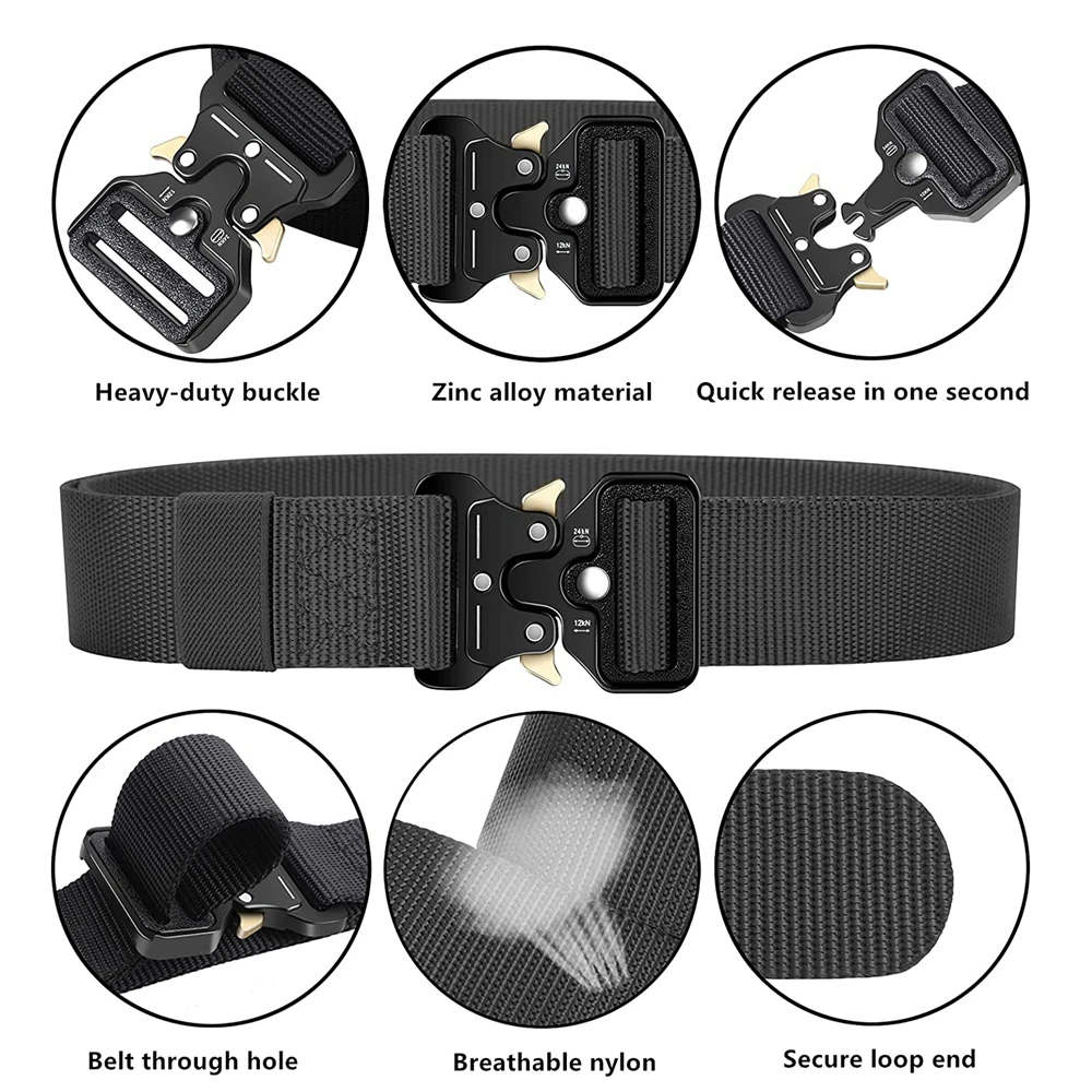 Heavy Duty Quick Release Metal Buckle: The tactical belt features a good belt buckle made of zinc
