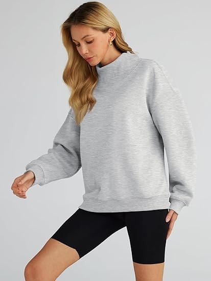 ★Design: left side slit design on the collar, athletic workout active sweatshirt,women pullover crewneck tops,drop shoulder collar,solid color,fleece lined, relaxed fit.