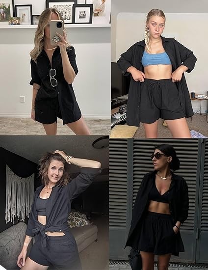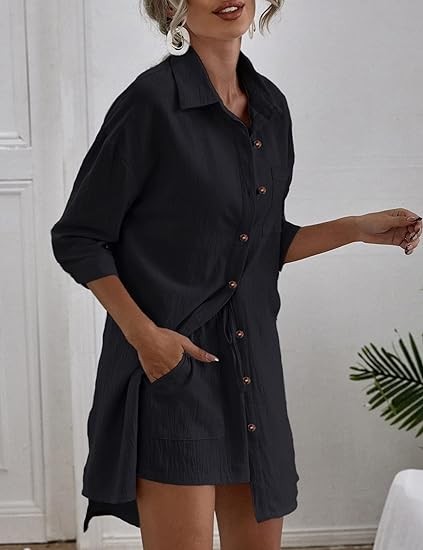 Material: Linen sets for women has no stretch,wear-resistant and breathable to wear. Loose long shirts and shorts set and will shrink slightly to TTS style after washing.If you like Oversize style, we recommended buying a Large size.